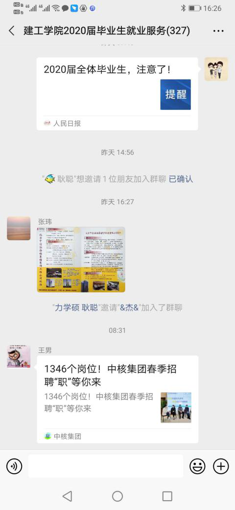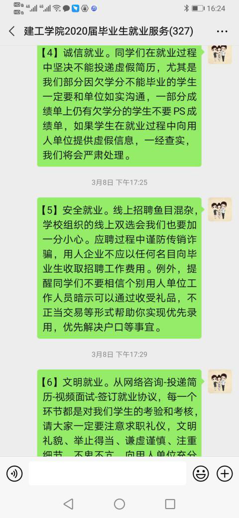 本学期以来,学院党委副书记王兵多次召开毕业班辅导员视频、音频会议,部署2020届毕业生的就业工作。建立了2020届毕业生就业服务微信群。集中进行线上就业指导,引导毕业生积极抓住就业机会,做到文明就业、诚信就业和安全就业;发动校友资源,多渠道收集就业信息并进行线上推介;邀请用人单位代表入群与毕业生近距离沟通交流,畅通供需互通渠道,提高工作实效性;学院领导和辅导员线上直接面向学生,及时解决学生求职过程中遇到的疑惑与困难。目前学院微信就业服务群已邀请20余家企业代表,300余名毕业生,为学生提供咨询服务500余次。