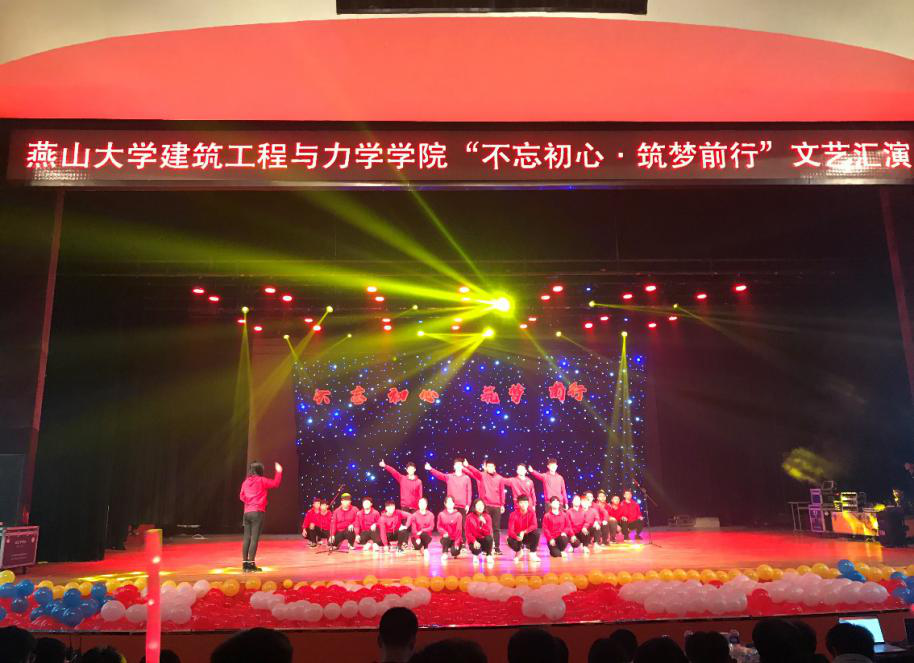此次文艺汇演由建工学院2019级同学以班级为单位报名参加,并将所有班级分为A队和B队,采取两队竞赛的方式开展,极大提高了同学们参加的积极性和汇演的观赏性。各班节目的选取紧紧围绕着“爱国情怀”“青春力量”等主题展开,情景剧《我的祖国》,从1919年学生抗议游行、青年飞行员悲情奔赴战场、新中国成立时人民的喜悦欢呼、改革开放后沧桑巨变四个场景为同学们演绎了伟大祖国的腾飞进步。诗朗诵《何以建工,何以燕大》,则饱含感情地的歌颂了燕大人的筚路蓝缕地艰辛创业历程,“百年啊,我以为百年足以使人沧桑,她却愈发释放光芒。我以为六十载足以使人彷徨,她却愈发步履铿锵”,同学们的诗句,是对燕大精神最好的赞扬。汇演的其它节目,也同样异彩纷呈,有对祖国母亲的深情歌唱、有对青春致敬的翩翩起舞,有对社会正能量致敬的情景演绎。节目形式多样,教育意义深刻,全场汇演掌声不断,得到了师生的认可和喜爱。