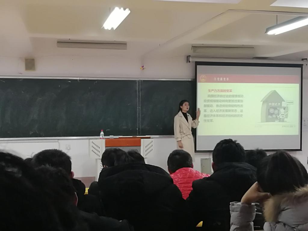 学生科邀请马克思主义学院研究生宣讲团于秋丽老师为学院17级学生作了一场题为《新概念新思想—党的十九大报告关键词解读》的专题辅导讲座,学习活动由学院学生科科长张娟娟主持。
