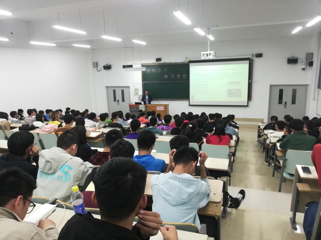 赵老师从丰富多彩的英语世界与世界英语、新时期大学英语课程设置及相关考试和竞赛、大学英语学习策略三个方面对大学英语学习的目的与意义、方法和技巧进行了详尽的阐述。关于丰富多彩的英语世界与世界英语,赵老师从英语全球本土化的启示意义入手,宏观上引导同学们应如何学习大学英语;关于大学英语课程设置与特色,赵老师从课程设置讲起,介绍了同学们最为关心的四级考试试卷的构成,其中,赵老师重点讲解了翻译部分,跟大家分享了网络上的“神翻译”;在大学英语学习策略方面,赵老师为同学们介绍了夯实基础的六要素。在互动环节,赵老师针对同学们提出的大学英语学习方面的各种问题,给予了详尽的解答,并提出了科学的建议。赵老师风趣幽默,深入浅出的讲解让同学们在轻松愉悦的氛围中深受启发,受益匪浅。