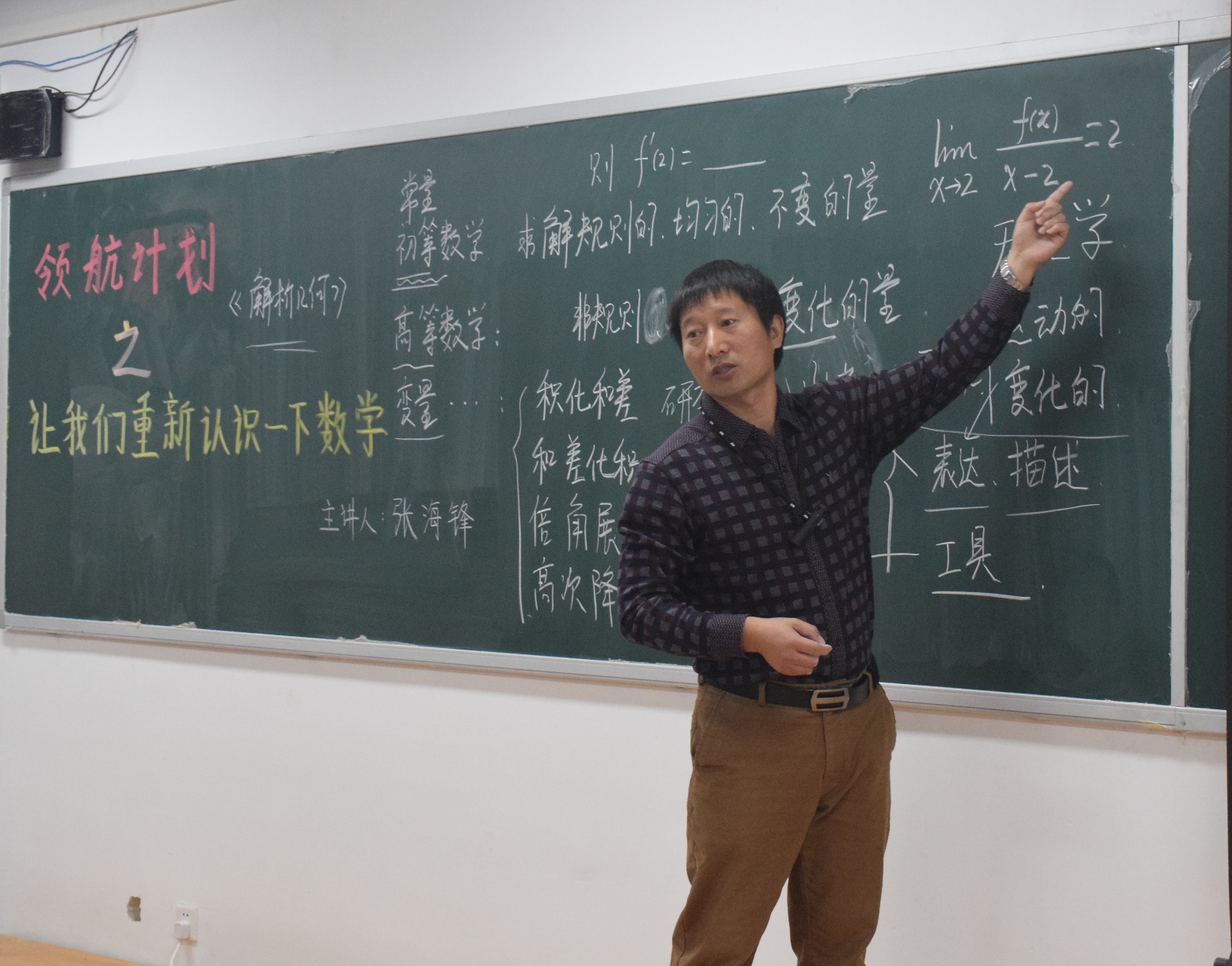 在东校区第三教楼420教室面向2020级新生举办了大学领航计划第三期活动。活动邀请理学院数学系张海锋老师开展题为《让我们重新认识一下数学》的高数导学讲座。
