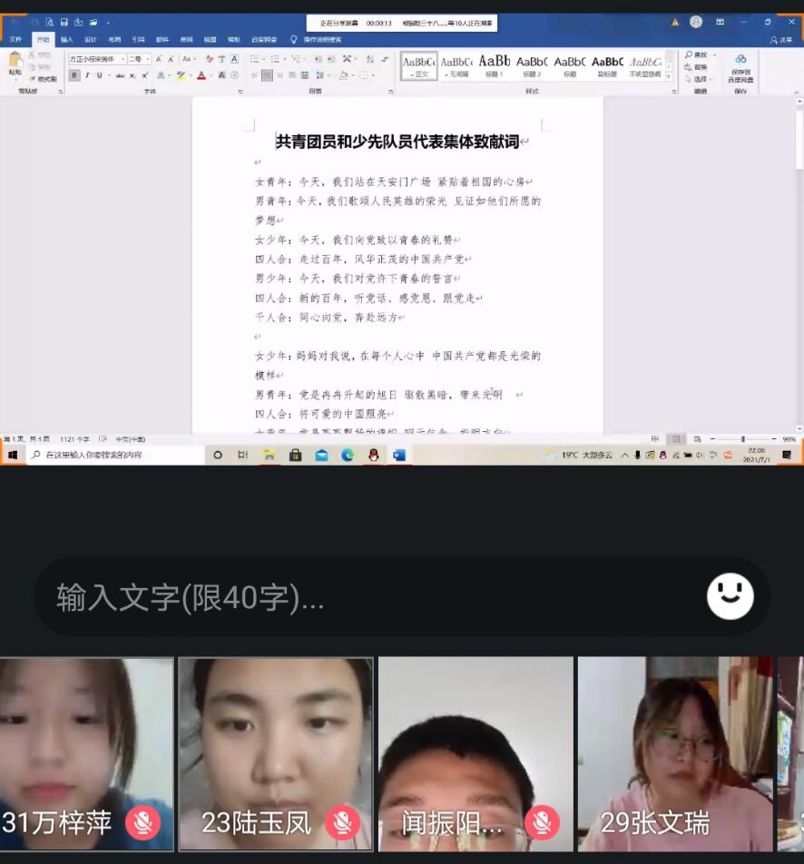 组织开展“庆祝党的生日,研学讲话精神”主题团日活动,院属58个团支部,全体团员通过线上、线下的形式开展活动。