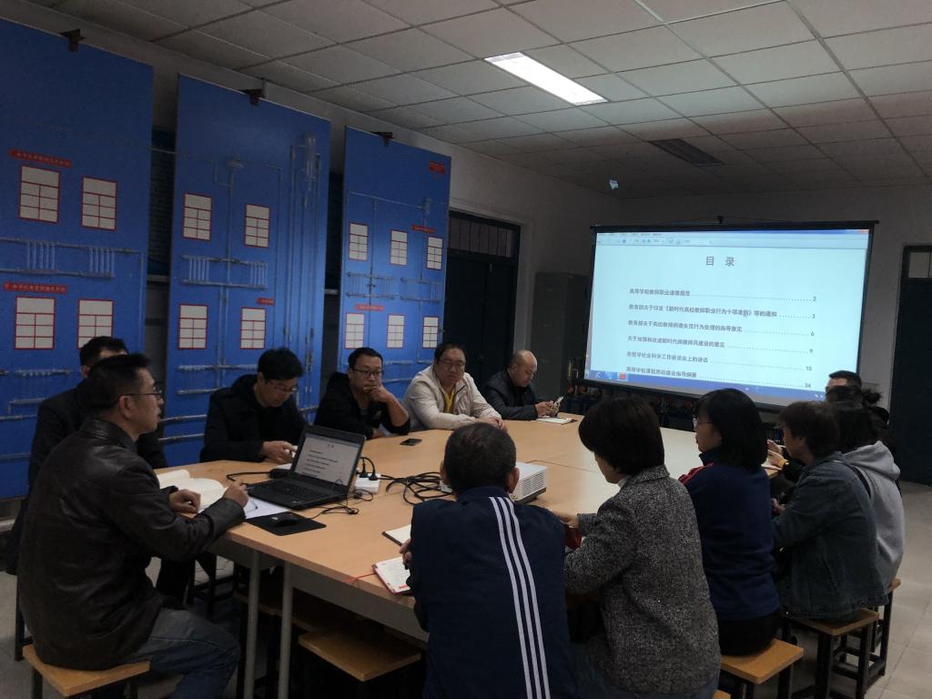 本次会议由实验中心刘小蛮主任主持,并带领实验中心全体教职工学习本次专题教育相关资料和文件。学习的主要内容包括高等学校教师职业道德规范,高等学校课程思政建设指导纲要,教育部关于高校教师师德失范行为处理的指导意见,关于加强和改进新时代师德师风建设的意见,以及成人论坛