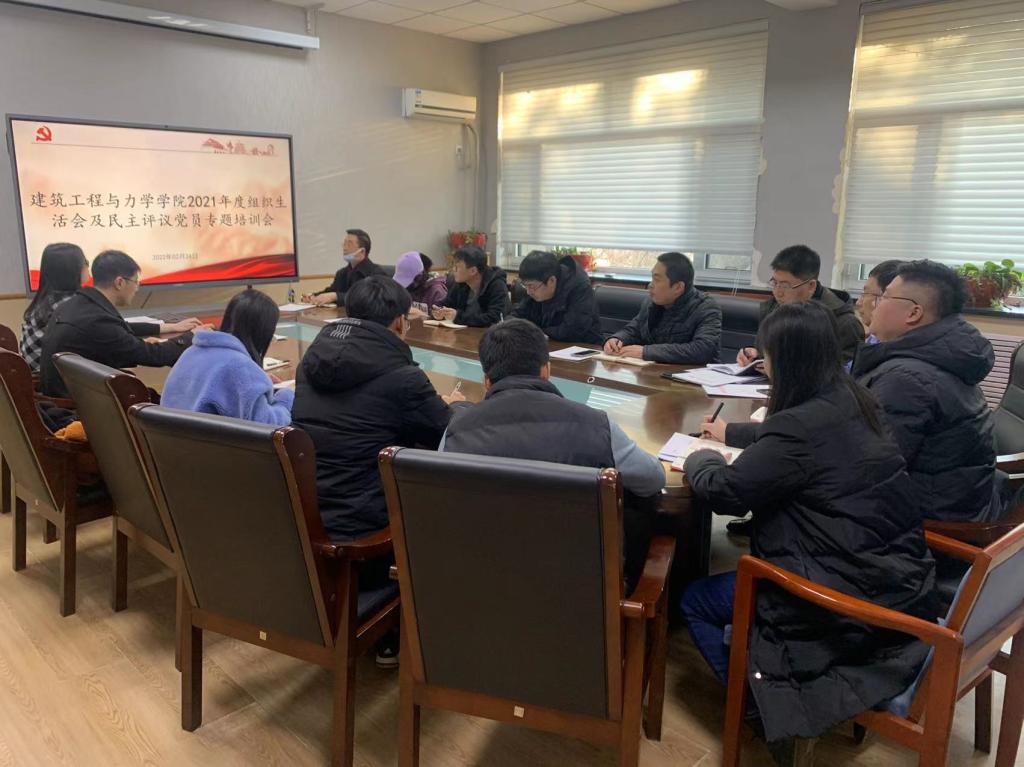 党委在建筑馆203召开2021年度组织生活会和民主评议党员专题培训会。学院党支部书记及专职组织员参加会议,会议由学院党委副书记王兵主持。