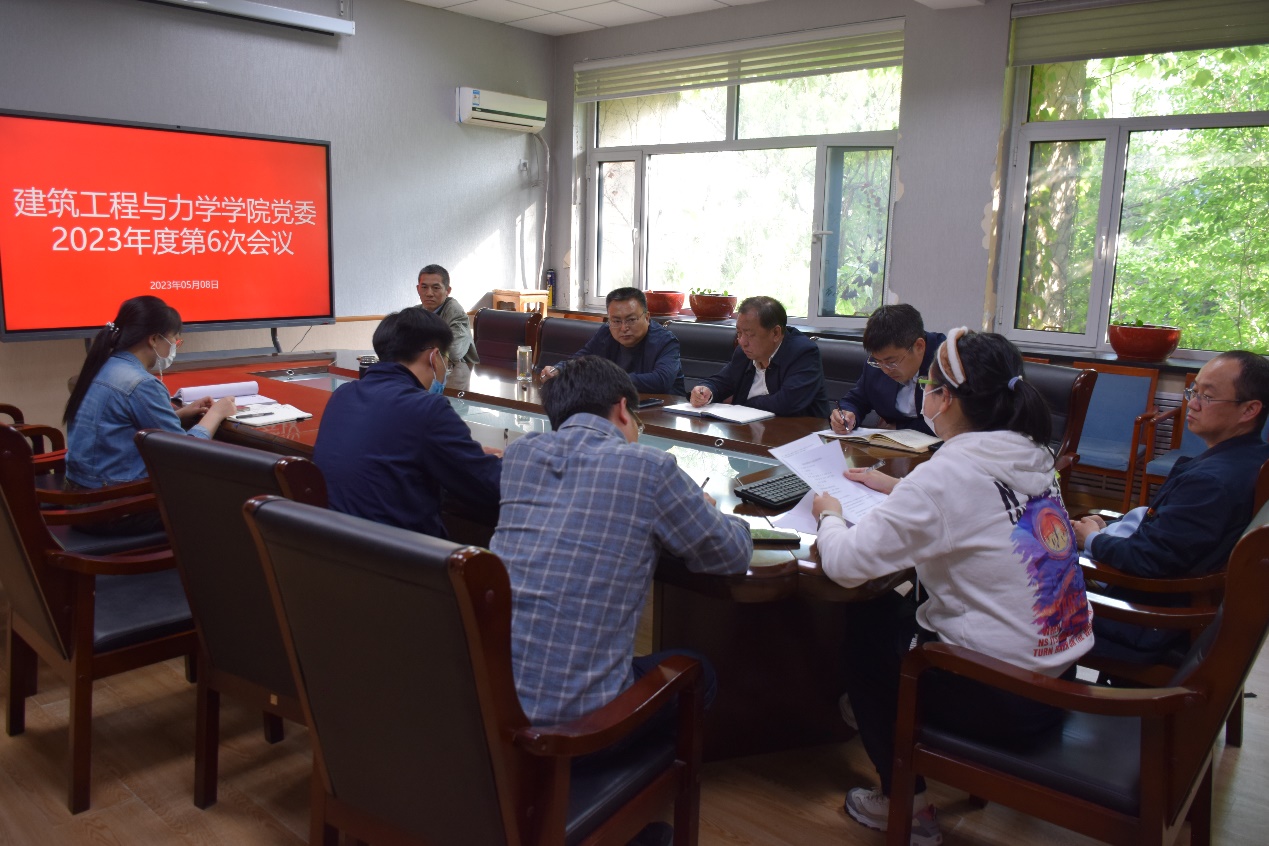 党委在建筑馆203室召开2023年度第6次党委会。学院党委委员出席会议,院长赵庆新、副院长胡建军列席会议,会议由院党委书记宗家富主持。