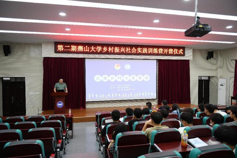 党委副书记王兵致辞。他对训练营如期开营表示祝贺,指出积极参加乡村振兴主题社会实践,是燕大人积极投身国家重大发展战略的必然选择,也是广大师生增长本领难得的“大思政”课堂。他勉励同学们要志存高远,更要脚踏实地,在实践中锻炼自己、检验自己、成长自己,以时不我待的精神状态投入到伟大民族复兴大业之中。