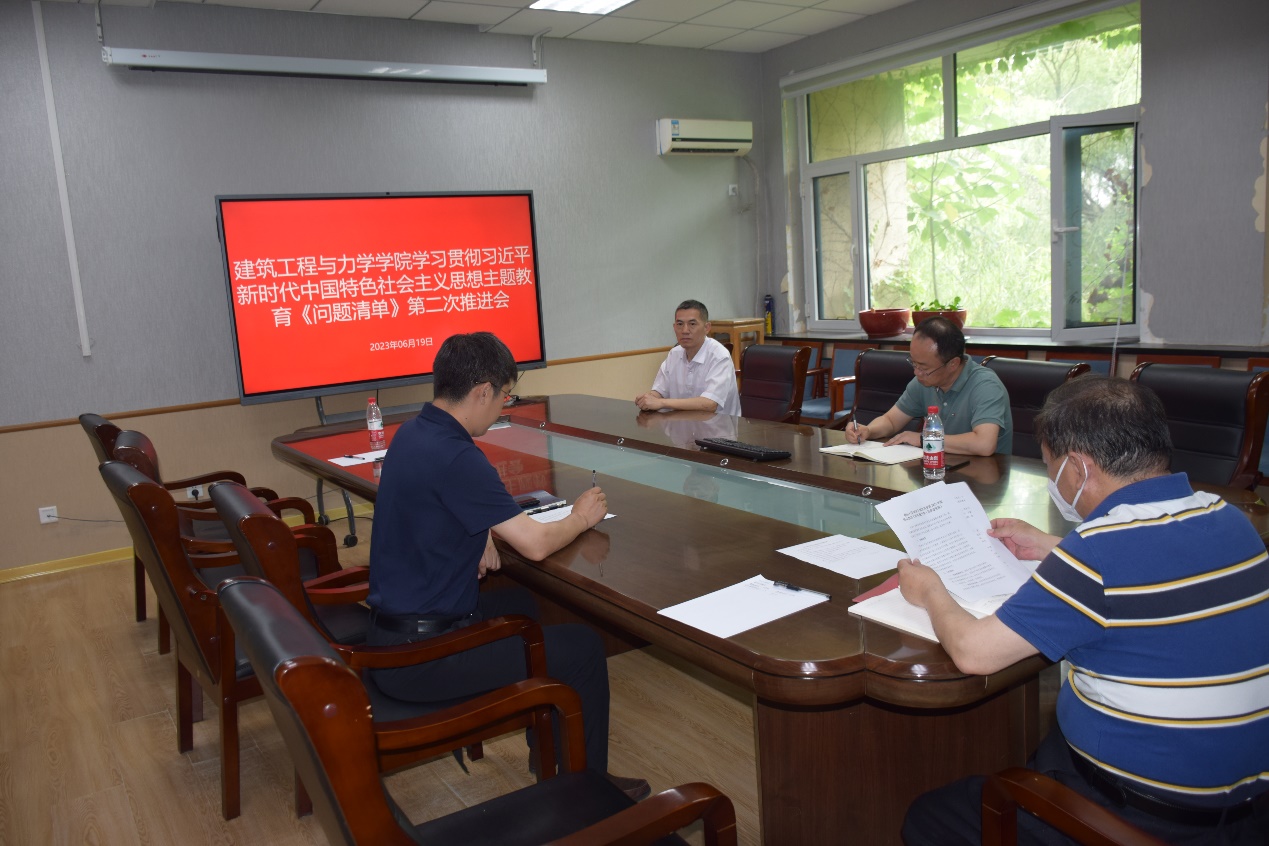 2023年6月19日上午,成人论坛 在建筑馆203室召开第二次学习贯彻习近平新时代中国特色社会主义思想主题教育《问题清单》推进会。学院领导班子成员参加会议,会议由学院党委书记宗家富主持。