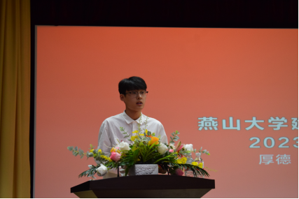在燕园开启人生新的篇章。2021级建筑学专业王茹同学作为在校生代表发言,表达了对2023级新生的诚挚欢迎,希望他们珍惜燕园这段旅程,带着向上的力量,逐梦青春、不负韶华。2023级土木类专业马启凡同学作为新生代表发言,表示将牢记“厚德、博学、求是”的校训,不负师长嘱托,刻苦学习、积极进取,绽放绚烂青春。建筑环境与能源应用工程系主任张天虎老师,分享了自己的求学经验,勉励新生们要坚守理想信念,厚植家国情怀,以奋斗之青春书写时代之华章。