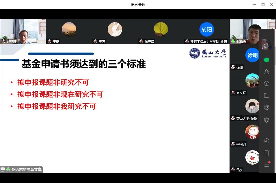 赵德志老师国家自然科学基金申请书撰写及申报经验交流会成功举办。