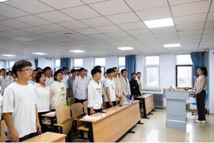 大会第一项,邓老师宣布学生干部由自荐及民主投票选出,经过一定实习考核期检验,对新一届学生干部的成功当选表示祝贺。随后全体起立,合唱《光荣啊,中国共青团》,明确青年大学生要努力把青春奋斗融入党和人民事业,在青春的赛道上奋力奔跑,追求卓越。