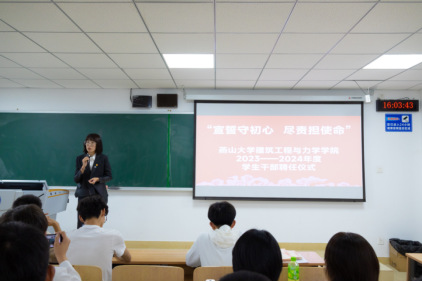 于10月12日开展2023——2024年度2023级全体学生干部聘任仪式,新生辅导员张娟娟、邓闰芳及学院全体学生干部参加此次会议,会议由邓闰芳老师主持。