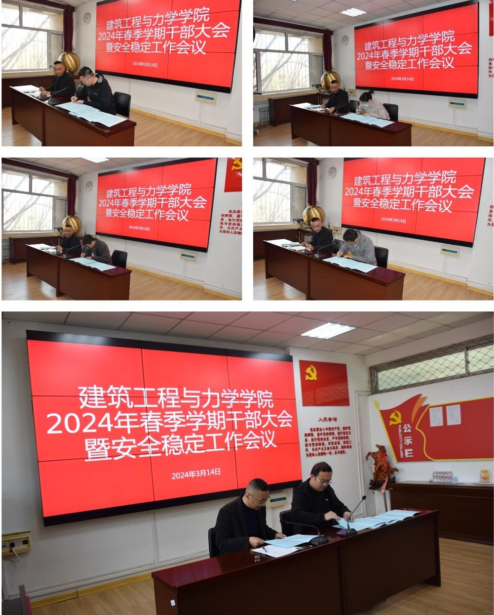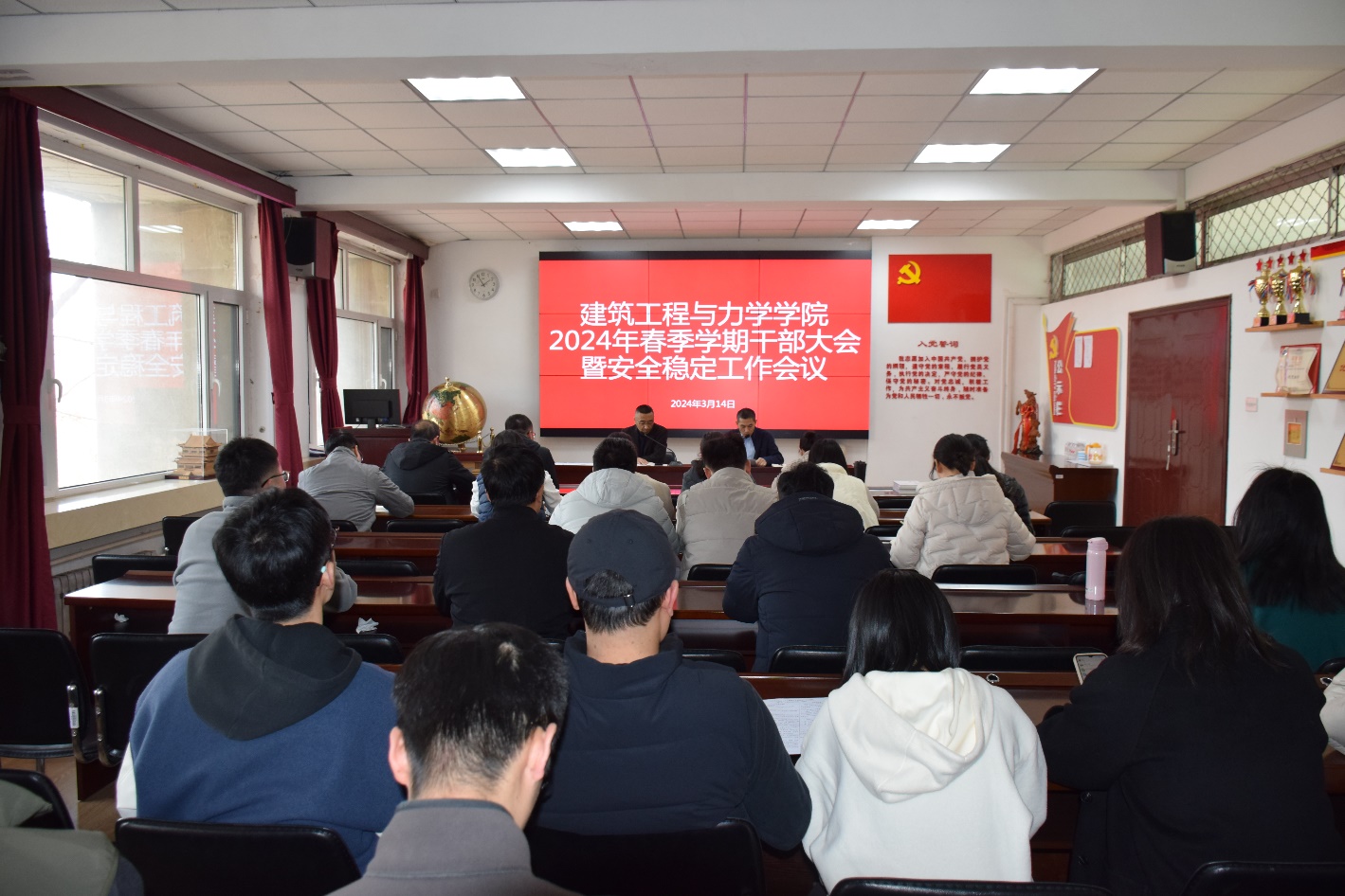 在建筑馆211室召开2024年春季学期中层干部大会暨安全稳定工作会议。学院领导班子成员和全体中层干部参加会议。会议由学院党委书记王继东主持。