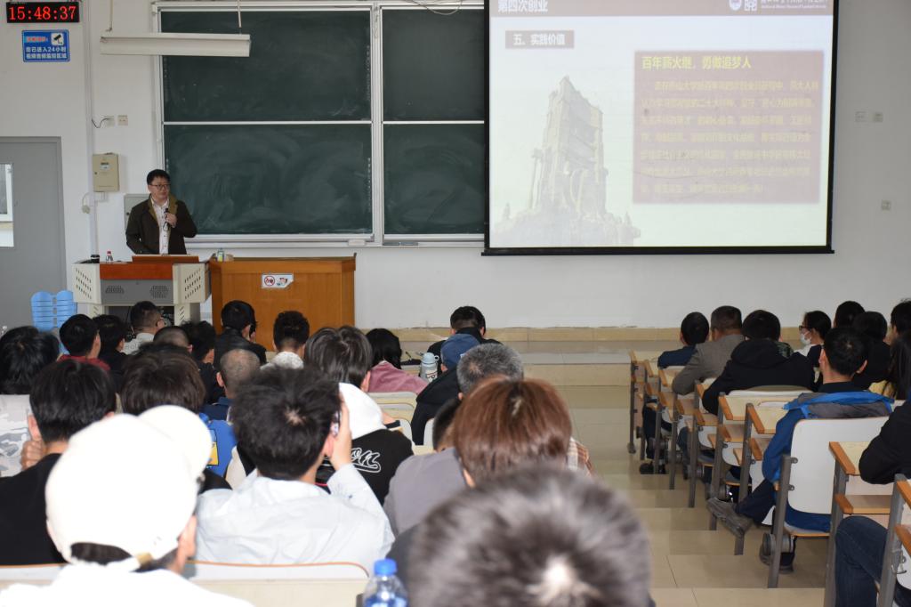 “四次创业”历程。整场讲座生动、形象,热情澎湃,内容基于校史,又融合了郭沛馆长对校史的思考。在郭馆长的带领下,大家不仅回顾了学校的发展历程,更感受到了那些激励自己前行的力量,讲座过程中会场上不时爆发热烈的掌声。
