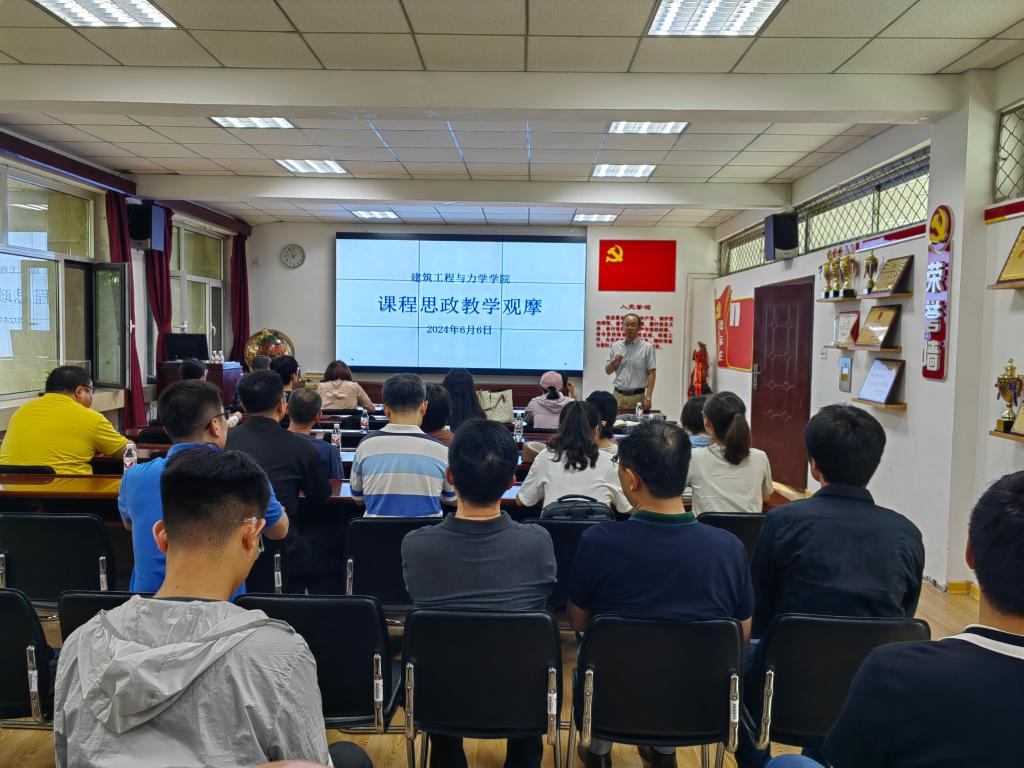 于6月6日(周四)下午14:00在建筑馆211室举行了“课程思政”教学观摩活动。主管本科教学工作副院长胡建军主持本次活动,马克思主义学院杨新宾课程思政教师团队、成人论坛