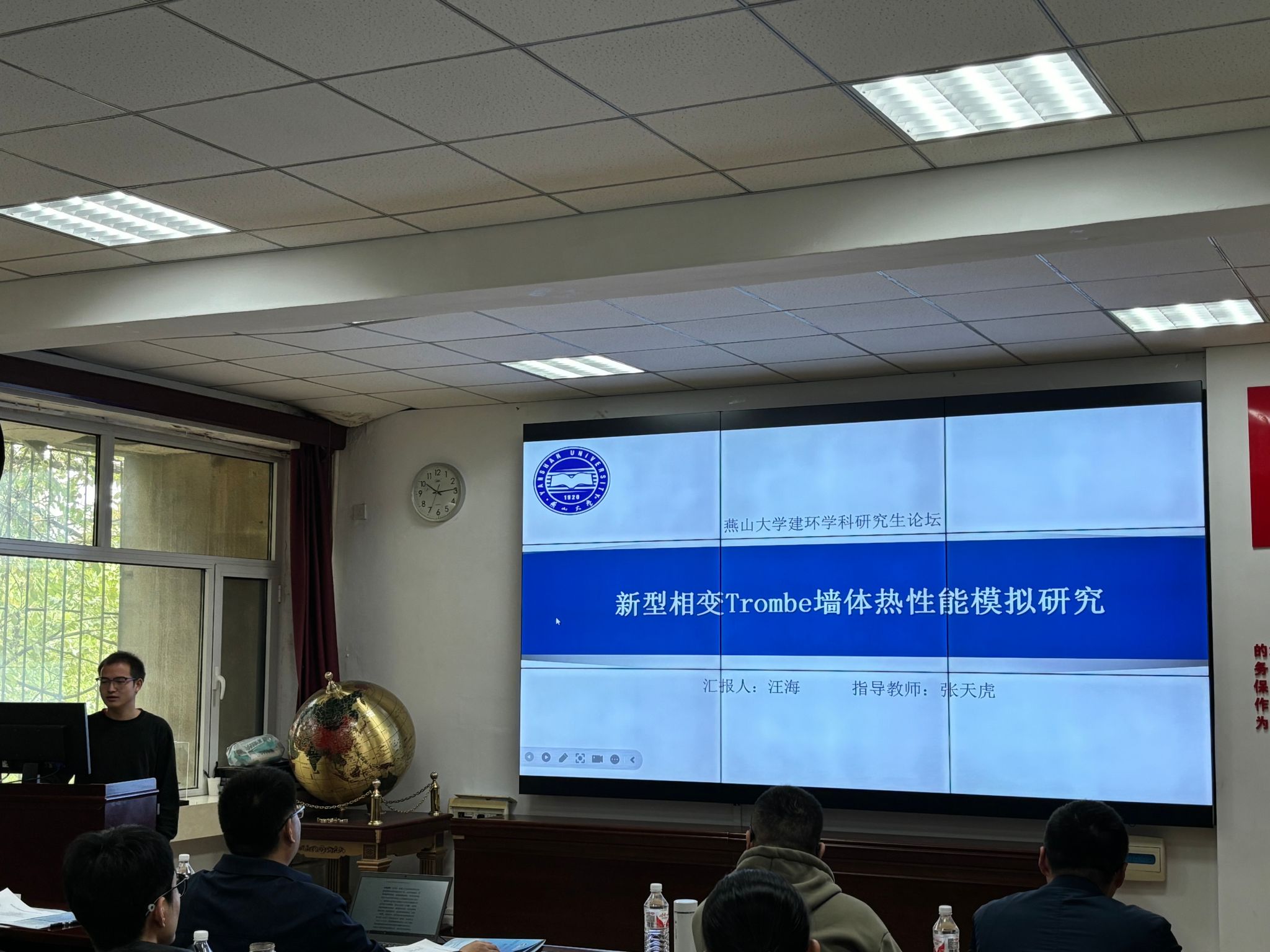 陈玉柱老师先后作了特邀报告,报告内容涵盖室内空气净化技术、建筑节能技术、建筑供能系统优化等建筑环境与能源工程领域的最新研究成果、前沿趋势及未来展望。邀请报告环节由天津大学、北京工业大学、河北工业大学的博士研究生就建筑光伏技术、节能窗设计、相变蓄能清洁供热技术等问题与老师、同学开展交流。论坛报告由成人论坛