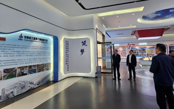 在安徽建工建筑工业有限公司总经理朱旺成等公司领导陪同下,郝圣旺一行先后参观了绿色建造展厅及装配式建筑生产车间,并共同进行座谈交流。座谈会上,郝圣旺介绍了学校的历史沿革以及近年来在人才培养、学科建设、科学研究等方面取得的成绩。他表示,学校历来高度重视学生的综合素质培养,特别是注重培养具备创新精神和实践能力的高素质应用型人才。朱旺成也向到访团队简要介绍了安徽建工建筑工业有限公司发展情况,介绍了公司在装配式建筑领域获得的成绩和精品工程,希望双方加强交流与联系,深化合作内容,开展多样化、深层次的产学研用融合以及人才培养合作。