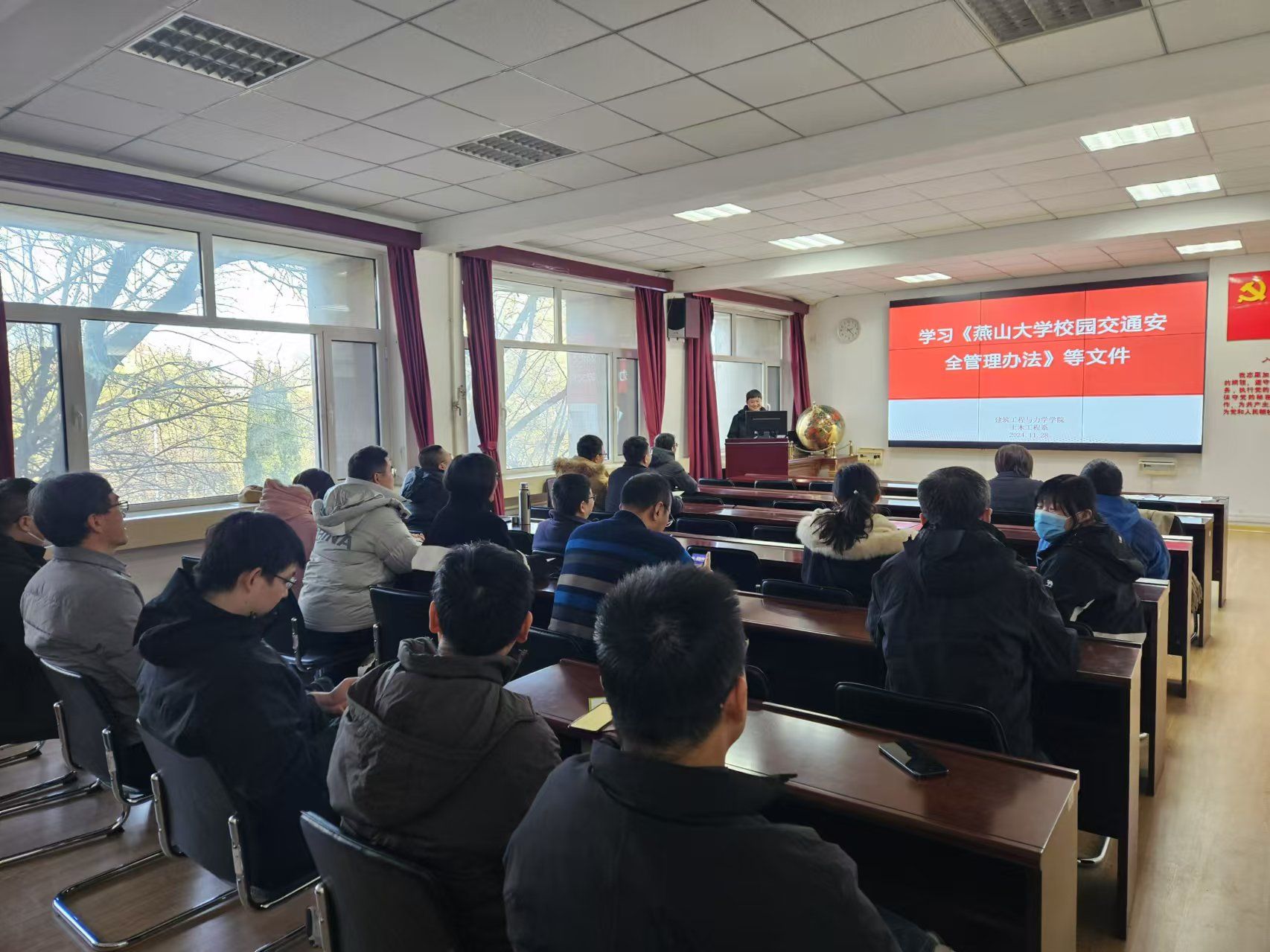 校园交通安全管理办法》等文件。王强副主任带领大家认真学习了相关文件内容,特别强调了校园交通安全的重要性,要求全体教师严格遵守校园交通规定,共同维护校园的安全和谐。通过学习,教师们进一步增强了安全意识,明确了自身在校园交通安全管理中的责任。