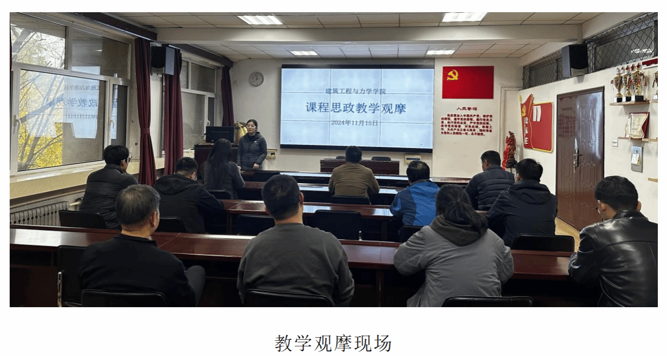 为进一步落实立德树人根本任务,充分发挥课堂教学育人的主渠道、主阵地作用,进一步推进学院课程思政建设提质增效,加强课程思政优秀课程、优秀教师的示范作用,促进学院“课程思政”教育教学改革,2024年11月15日下午,学院在建筑馆211会议室举办了主题为“课程思政赋能专业课程”的2024年秋季学期“课程思政”教学观摩活动。各系教学主任、学院课程思政示范课项目负责人、部分专业课教师、综合办公室教务老师参加了此次观摩活动。