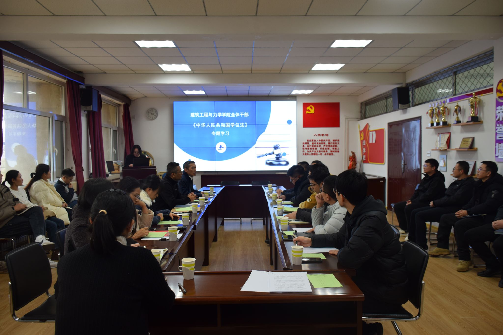 领导干部学习《学位法》专题会,学院科级以上干部、系正副主任、党支部书记参加学习。