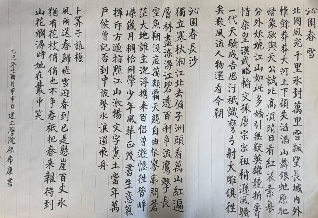 同学们以毛笔为媒,以翰墨为介,将恢弘的革命诗词与深刻的领袖语录挥洒于宣纸之上。作品或苍劲有力,或端庄隽永,在一笔一划的韵律中,不仅展现了中华书法艺术的博大精深,更传递出对革命先辈的崇高敬意与对民族精神的深刻理解和自觉传承,让红色血脉在浓郁墨香中生生不息。