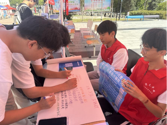“反诈标语征集令”获得热烈反响。同学们结合常见诈骗场景,创作出诸如“客服索要验证码?反手就是一个举报!”“陌生链接不乱点,个人信息不外传”等简洁有力、风趣有料的宣传口号。活动现场还设有巨幅签名画纸,同学们用黑色中性笔郑重签下姓名,承诺共同维护清朗网络空间。