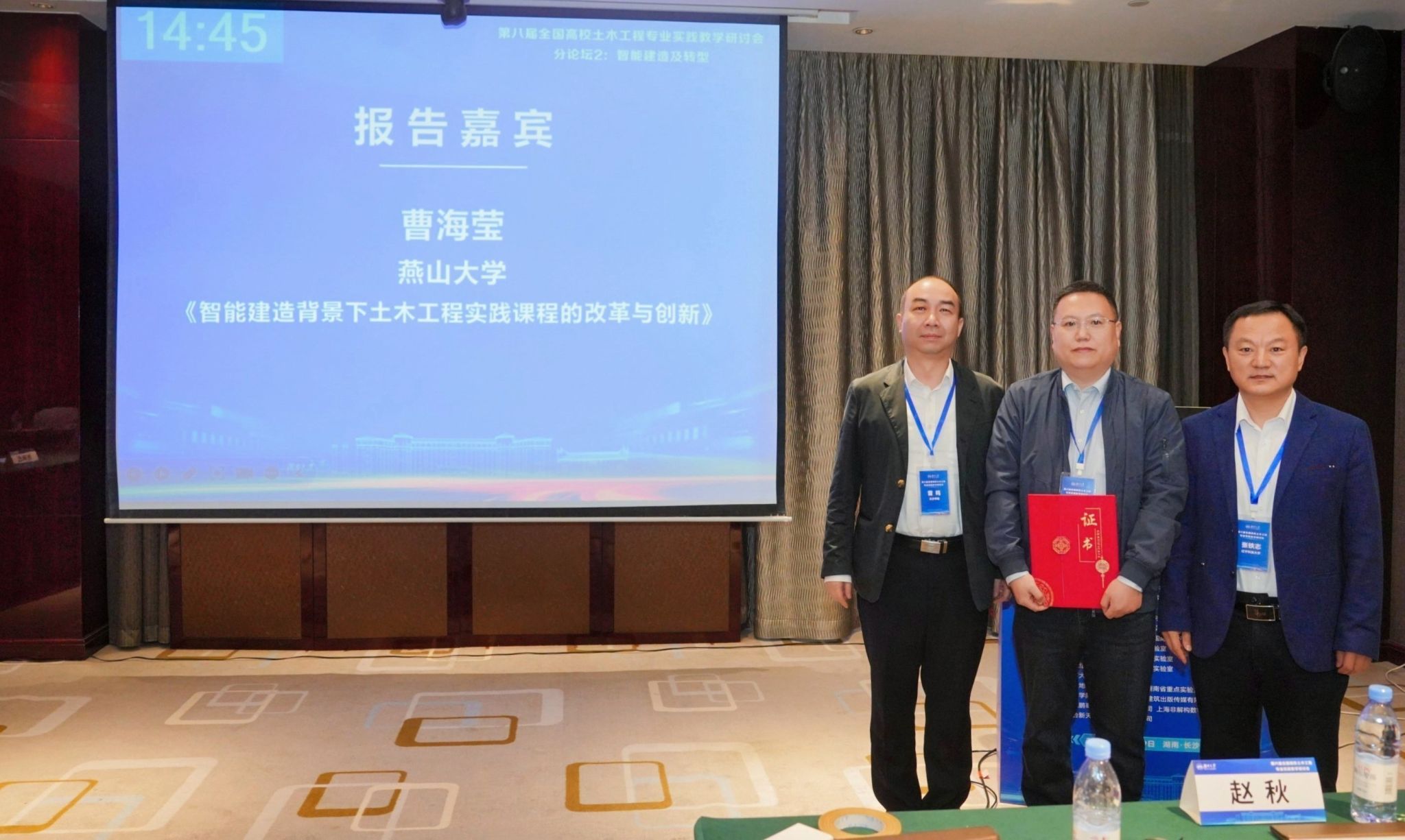 2025年11月7-9日,第八届全国高校土木工程专业实践教学研讨会在湖南长沙召开,本次会议以“人工智能时代土木工程专业实践教学创新发展”为主题,由教育部高等学校土木类专业教学指导委员会指导,教育部高等学校土木工程专业教学指导分委员会主办。来自全国135家土木工程相关单位的领导、资深教育专家及教学骨干和企业代表齐聚一堂,共商人工智能时代我国土木工程专业实践教学的转型和升级。副院长曹海莹及土木系副主任陈正心代表学院参会。