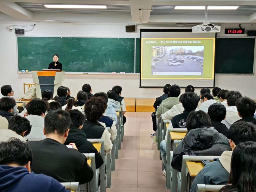 为进一步增强学生的交通安全意识,营造安全、有序、和谐的校园交通环境,11月14日,辅导员宫军军面向2025级全体本科生组织开展了以“文明交通,平安校园”为主题的安全教育主题班会。班会围绕校园交通安全现状、常见隐患、交通法规、事故案例、应急处理及文明倡议等内容展开系统讲解,引导学生树立安全意识,规范交通行为。