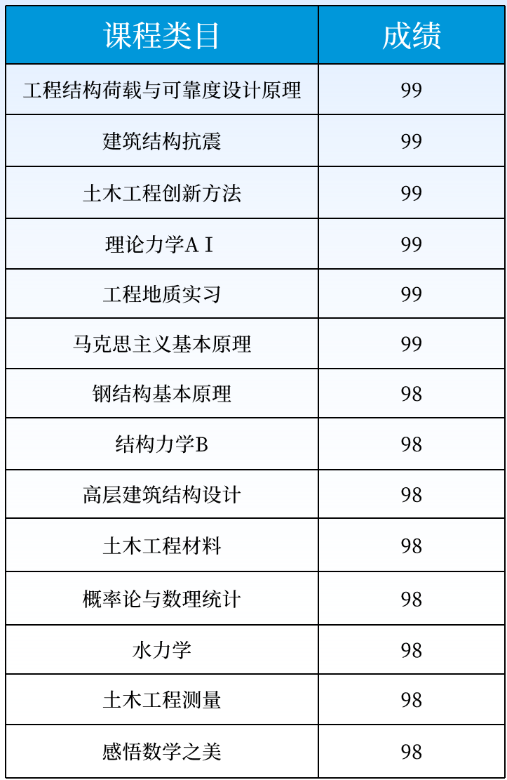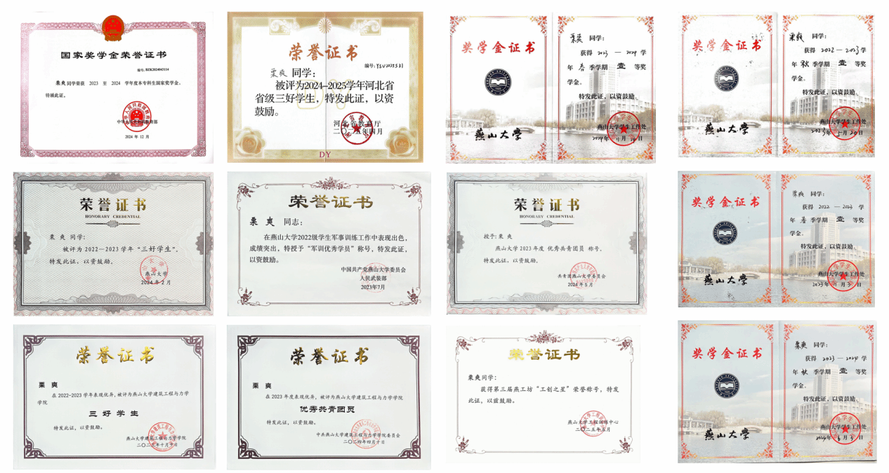 优秀共青团员等19项荣誉,最终推荐至天津大学攻读土木水利专业学位硕士研究生。