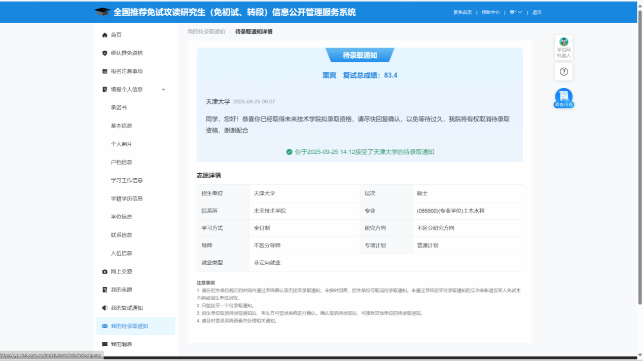 在刚刚过去的2025年盛夏,栗爽同学先后获得了天津大学、山东大学、吉林大学等多所高校的录取offer。他最终被天津大学浓厚的学术氛围与人文关怀所深深吸引,并充分考量个人的发展蓝图与学术兴趣,选择去往天津大学进行深造。