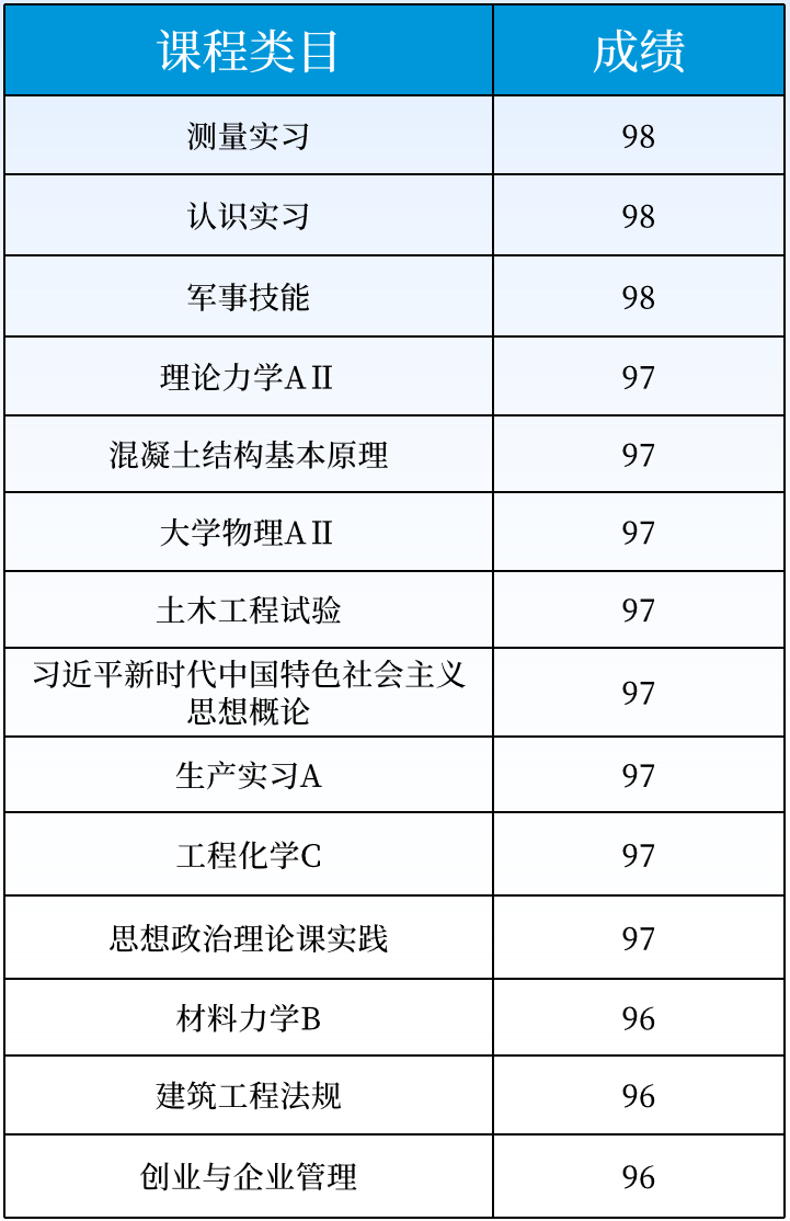 的校门。大一第一学期,他就对待学习一丝不苟,励志要通过自己的努力获得推免资格,去到心仪的更高学府继续深造。他制定自己专属的学习计划,早上第一个出宿舍,晚上坚持学到图书馆关灯才回宿舍。他认真对待学习上的每一件事,第一学期就获得土木类专业第一名,这给他的求学之路奠定坚实自信。