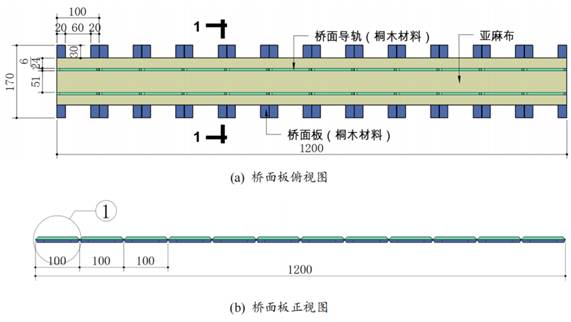 3. 为保证动载荷的顺利加载,规定桥面总长度为120cm、桥面距支座平台高度为20cm、桥面宽度不得小于18cm;
