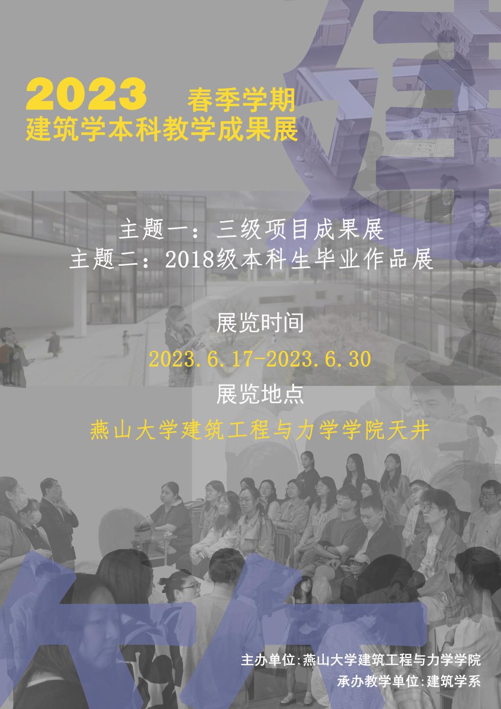 成人论坛 建筑系于2023年6月17日举办2023年春季学期建筑学本科教学成果展。展览涵盖2018级本科生毕业作品展、2023年春季学期三级项目成果展两个主题、七门课程的作业成果,欢迎广大师生前来观展!